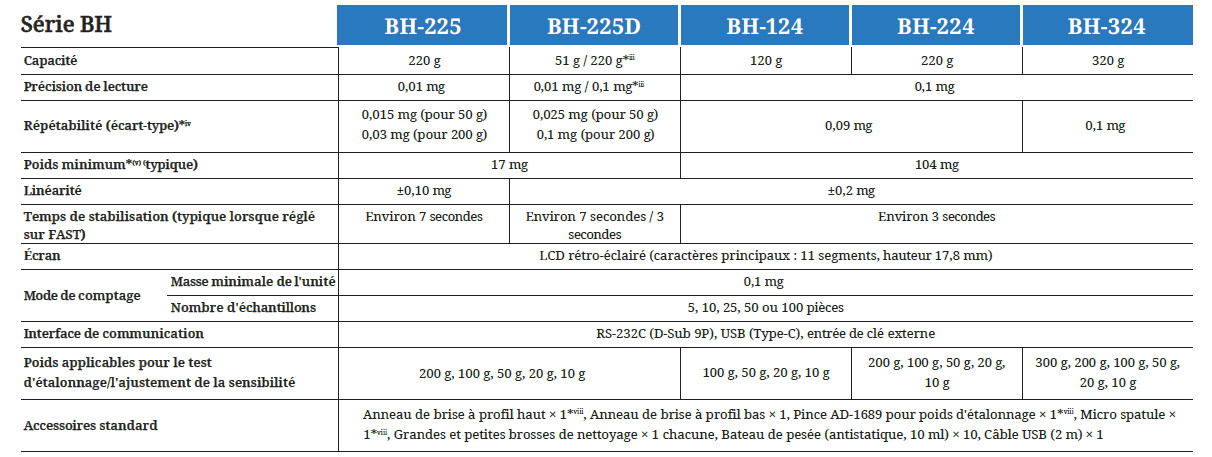Modèles à écran LCD rétroéclairé : BH-225, BH-225D, BH-124, BH-224, BH-324